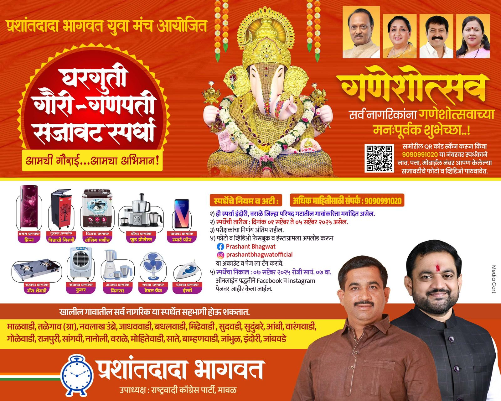 या उपक्रमाविषयी बोलताना, राष्ट्रवादी काँग्रेस पक्षाचे मावळ उपाध्यक्ष व जिल्हा परिषद निवडणूकीसाठी इच्छुक उमेदवार प्रशांतदादा भागवत यांनी सांगितले की, “गणेशोत्सव हा एकता, श्रद्धा आणि सर्जनशीलतेचा सण आहे. या स्पर्धेमुळे घरोघरी असलेली कला आणि भक्तीभाव दिसून येईल. प्रत्येक नागरिकाने यात सहभागी होऊन हा उपक्रम यशस्वी करावा, अशी माझी अपेक्षा आहे.”